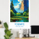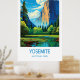 This Yosemite National Park travel poster offers a thoughtfully designed illustration inspired by classic American travel art. The artwork highlights Yosemite’s defining features—towering granite formations, forested valleys, and expansive skies—rendered with balanced color and a clean, timeless composition.