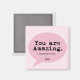 This round pink magnet features a powerful reminder: You are amazing. [Remember that.]