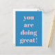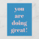 You Are Doing Great Inspirational Pink and Blue Postcard