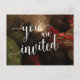 The words "you are invited" were rendered in a beautiful, modern handwriting font and added as an image overlay. The photo behind features an original photo of a cluster of Christmas tree ornaments, shot close-up. The ornaments are cracked glass, sequined and glitter-enhanced balls.