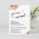 Here's a fun, simple choice for your post-wedding celebration needs. Over an editable white background, I've placed small painted sprays of boho watercolor flowers and a typography graphic that reads "you are invited" featuring an elaborate script font embellished with hearts. Below that, your details appear in a simple, all-caps font. More flowers and the word "love" in script appear on the back. Use the template fields to add your own info and click to customise further if you'd like to make any additional modifications. All layers are unlocked to allow for all the positioning and sizing control you desire.