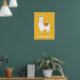 This fun poster features and adorable white llama dressed up in shades of pink, turquoise and yellow on a matching golden yellow background.  Makes a great gift for any age from nursery to dorm room to office!