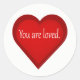 A graphic heart by artist/designer Charmaine Paulson with the text “You are loved” on a sticker.