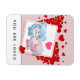 Flex magnet says: You are Loved. Text can be edited or removed. Designed with a cute cartoon image of a bear pair, one bear is pastel pink with a little bow and she is kissing the cheek of a blue bear who looks positively delighted. Very cute and kawaii. Lots of red hearts floating all around. Muted Pink background with a white polka dot pattern.
