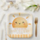 These sunshine themed paper plates have been designed to match our watercolor You Are My Sunshine collection! All of the text on these can be personalised to accommodate your event. This theme is perfect for any sun themed event with soft tones of yellow and orange. This design features a watercolor sun with background yellow splashes.