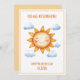 You Are My Sunshine Cute Happy Valentine's Day Holiday Card features a charming yellow watercolor smiling sun with soft blue clouds, illustrated in a playful kids' cartoon style. The design is set on a white background with a matching yellow border and includes yellow text and Valentine’s Day wishes, personalised with the recipient's name.