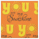 You are my sunshine text design with yellow, shiny sun decoration. It is possible to change the background colour and to add different one to the design with your choice.