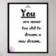 Step into the realm of boundless inspiration with our captivating Motivational Quote Poster, bearing the timeless mantra: "You are never too old to dream a new dream."