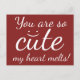 Are you looking for a cute postcard with a cute saying to send someone extremely cute and adorable? How about this cute red and white postcard that says 'You are so cute my heart melts!' printed in white cursive letters next to a cute smiling face?