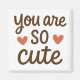 A cute and uplifting typography magnet featuring the sweet phrase “You Are So Cute” with warm colors and heart accents. This charming design adds a touch of positivity and love to any refrigerator, locker, or magnetic surface.