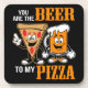 Add a touch of humour and love to your table with this funny and cute beer & pizza-themed coaster! Featuring a playful cartoon of a happy beer mug and a smiling pizza slice, this design is perfect for couples, best friends, or anyone who knows that beer and pizza are the ultimate pair.