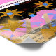 This mixed media print from JoyCrys Studio’s Light Series II blends vivid pink gemstones, golden stars, and vintage paper texture.