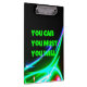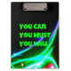 This clipboard has a motivational saying on it, "You can, you must, you will."