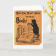 A vintage-style black cat sits on a pile of books, reading. An original design inspired by an antique colouring book. White edged.