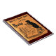 A black cat reads while sitting on a stack of books. A modern work in a vintage style based on several plates from antique colouring books.