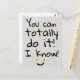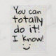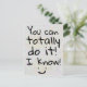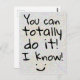 This is a fun motivational words postcard that says: 'You can totally do it! I know!' written in cool letters above a smiling face, on a colourful 'sprinkles' design background. Great postcard for kids!