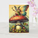 A vintage fairy siting on a retro mushroom. Cute graphics with a magical vintage vibe. Keeping in touch with a friend and letting them know you are thinking about them.