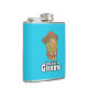 Well made flask, a little better than I had expected. Flask came in clear plastic box which gave it a nice presentation when I took it out of the zazzle packaging. Image is not printed on flask but on sticker. Don't know how this will hold up I haven't used it yet. This would make a Great gift! I plan to purchase more for friends! Cheers. I thought a little brighter than computer. Very crisp, writing wasn't
