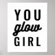 This design featuring “You glow girl” is a perfect gift for office, business, home or for yourself that love inspirational, motivational or positive quotes.