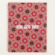 Customisable Geometric Floral Planner. Chequered Floral Planner. Retro Geometric Floral Journal. Geometric Planner. Red, Black and Grey Planner. Personalised Geometric Patterned Planner.