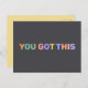You Got This Modern Inspirational Quote Colourful Dark Grey Custom Postcard. On the back of the postcard, personalise it to your own greeting/text. Perfect for someone who needs words of encouragement, words of motivation for success or for going away to college gifts. Order yours today!