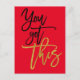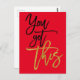 Give someone a boost and send them a postcard with a message of encouragement! This has motivational words You Got This in gold and black typography against a red background which can be changed to a different colour if you so wish.