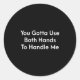 You Gotta Use Both Hands To Handle Me Humor Quote Classic Round Sticker
