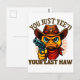 Waddle up, partner. This “You Just Yee’d Your Last Haw” Postcard design featuring a fearless cowboy duck is the ultimate yeehaw showdown of memes, chaos, and country swagger. Whether you're from the South or just love unhinged humour, this outlaw duck is ready to draw. Perfect for meme lovers, country pun fans, Gen Z chaos gremlins, or anyone who wants to wear something that screams, “I bring the drama and the duck.”Quirky. Ridiculous. Yee-worthy. A legendary gift for besties, gamers, rodeo clowns, or duck enthusiasts with attitude.