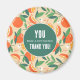 You make a difference, thank you magnet with a retro vibe. A pattern composed of sliced oranges, whole oranges, green leaves and white blossoms.