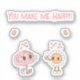 Cheerful cutout sticker featuring a happy walking brain with chemical DNA smilies and the text You Make Me Happy! (text is customisable).