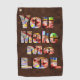 The golf towel exceeded my expectations! My husband actually approved of it! He liked the picture quality, thickness and overall usefulness of the golf towel I ordered to commemorate his lowest ever golf score. He liked it so well that I ordered 8 more towels with photos of his home golf course. Each one of the eight has the name of one of his golf group members. I will give them as party favors at my husband's 70th birthday party later this year. The different names were easy to add because the Zazzle template is so very easy to use. The colors were bright and authentic in all 9 of the towels that I made. The one of the 9 that I ordered has come out of the wash and line dry looking great.