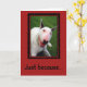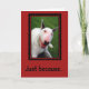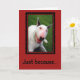 English Bull Terrier smiling. "Just because you always bring a smile on my face." Let someone know how you appreciate them with this cute greeting.