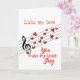 You Make My Heart Sing Valentine card will bring a happy smile to the face of everyone you send it to. This design features hearts dancing across the music and is customisable by just clicking the edit or personalise button. Change the sentiment on the top of the front of the card and the inside of the card. You can even send it to your dog or cat.