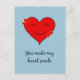 "You make my heart smile". Romance and happiness together, this is what true love is all about. A large red smiling heart, two pairs of smaller red hearts and a pale blue background.