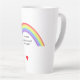 This large latte mug is decorated with a rainbow and the words: You make the world a better place. Below is a small, red heart. You can personalise it with any name, and it's easy to change the words if you wish. Give it as a friendship or valentine's present.