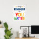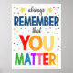 A great poster to hang in a school guidance counsellor office, child therapist or child psychologist to remind kids that they matter! A very cute poster to decorate the classroom or office with! Features a bright, fun and cheerful colours.