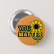 Brighten up your day with the "You Matter with Sunflower Button"! This cheerful design features a vibrant sunflower, symbolising positivity and happiness, with the uplifting words "You Matter" prominently displayed. Perfect for backpacks, jackets, or any accessory, this button serves as a gentle reminder of your worth. Spread positivity and encouragement wherever you go with this sunny and motivational accessory.