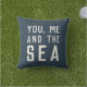 Add cool nautical style to your patio, beach house or pool area with our outdoor throw pillow in rich navy blue, featuring the quote "you, me and the sea" in off white lettering.