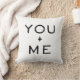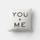 A simple black and white pillow that says you + me. It would make a great addition to bedroom decor.