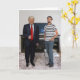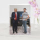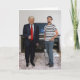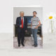 Congratulations!? You met President Donald Trump. On these personalised greeting cards, you can replace the scene behind and around Donald with your own photo. President Trump is an isolated image, so the rest of the scene is yours. To make it look like you're standing next to Trump, take a vertical picture of yourself (full body) standing off to the side of the photo (as in the sample). Use the easy template to change the stand-in picture to your own. Then, if you need to make detailed adjustments, "customise / personalise further." From there, you can resize your picture - and resize and move Trump! PICTURE IDEAS: If you like Trump, you can both be giving thumbs up. If you dislike him, you can be holding up a protest sign. Add in your family for the holidays. The possibilities are endless.