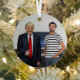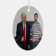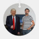 Congratulations!? You met President Donald Trump. With this personalised metal Christmas tree ornament design, you can replace the scene behind and around Donald with your own photo. President Trump is an isolated image, so the rest of the scene is yours. To make it look like you're standing next to Trump, take a picture of yourself standing off to the side of the photo (as in the sample). Use the easy template to change the stand-in picture to your own. Then, if you need to make detailed adjustments, "customise / personalise further." From there, you can resize your picture - and resize and move Trump! PICTURE IDEAS: If you like Trump, you can both be giving thumbs up. If you dislike him, you can be holding up a protest sign. Add in your family for the holidays. The possibilities are endless. PRODUCT TIP: When making adjustments, make them to both the "front' and "back" of the ornament.
