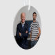 Congratulations!? You met President Joe Biden. On these personalised Christmas tree ornaments, you can replace the scene behind and around Joe with your own photo. President Biden is an isolated image, so the rest of the scene is yours. To make it look like you're standing next to Biden, take a picture of yourself standing off to the side of the photo (as in the sample). Use the easy template to change the stand-in picture to your own. Then, if you need to make detailed adjustments, "customise / personalise further." From there, you can resize your picture - and resize and move Biden! PICTURE IDEAS: If you like Biden, you can both be smiling. If you dislike him, you can be holding up a protest sign. Add in your family for the holidays. The possibilities are endless. DESIGN TIP: Don't forget to customise both the "front" and "back" of the ornament.