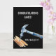 Personalized "you nailed it" congratulations card illustrated with a hammer and nail. Editable black background and white text - easy to add more text to the inside of the card.