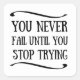You can add some originality to your wardrobe collection with this " you never fail until you stop trying" text design with awesome typography font lettering, is a great gift idea for men, women, husbands, wife girlfriend, and a boyfriend who will love this unique motivation and inspirational saying artwork. The best amazing short positive sayings present for your wisdom collection. If you like this artwork, you can check out other similar designs and options.