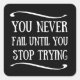You never fail until you stop trying motivational square sticker