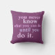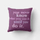"You never know what you can do until you do it." Inspiration quote on a plump purple pillow! Inspiring and motivational quotes for women, for self confidence and success, bold letters in pastel shades of pink and purple, various sized words for extra pizzazz.