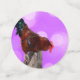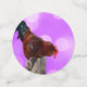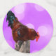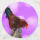 Pictured On A Fence On A Purple Bokeh Background Is A Nosey Rooster.