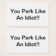 Tired of people parking like idiots? Leave this on the car of the next person that takes up two parking spots, parks too close to you or parks in a no parking zone.