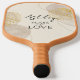 Light beige, a touch of gold, elegant black lettering. Feminine design that's not pink. A little less girly, but more ... serious. For pickleball fans. Suggested text with your name, like "[Ashley] plays with love."
