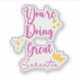 A bright and uplifting design with the encouraging words “You’re Doing Great Sweetie” in playful pink font, decorated with golden stars and a crown. Perfect for daily motivation, self-love reminders, or sharing positivity with friends. This cheerful artwork is a gentle reminder that you’re on the right track and doing amazing! 🌟👑💖